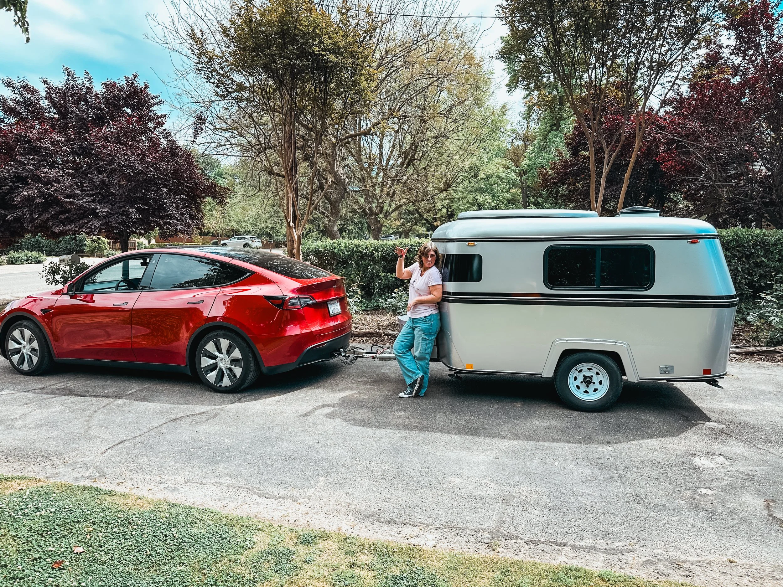 My KitKat is a 2016 MeerKat pulled with a 2021 Tesla Model Y. The Tesla’s tow capacity is 3,500 lbs, and the MeerKat’s dry weight is 920 lbs, gross about 1,200 lbs, with my functional additions.